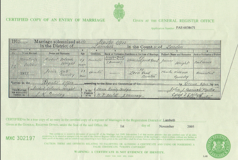 Here is Herbert’s marriage certificate very kindly forwarded to me by Elizabeth Ince.