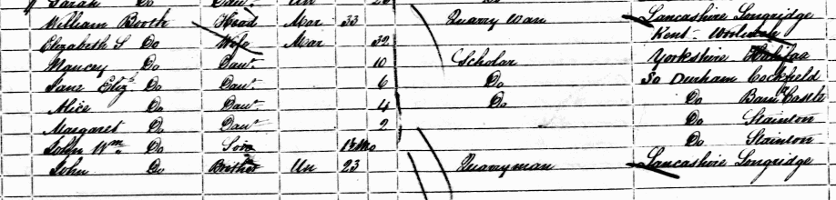 | William Booth | Head | 33 | Quarryman | Longridge, Lancs |